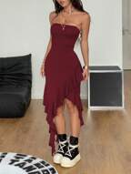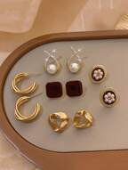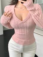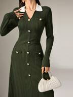 DAZY Women's Casual Contrast Color Patchwork V-Neck Top And A-Line Skirt 2 Pieces Set, Autumn