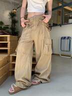 INAWLY 여성용 끈 조절 스트레이트 레그 캐주얼 루즈핏 편안한 운동복 바지