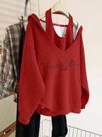POPSWAY 플러스플러스 사이즈 여성 가을/겨울 캐주얼 후드 니트 드레스, 나이트 패턴 & 지퍼 디자인