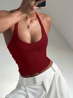 Soleia Women's Vintage Vacation V-Neck Halter Backless Tie-Up Fitted Contrast Color Top And Low Waist Ruched Drawstring Shorts 2 Pieces Set, Suitable For Party, Christmas, Date, Nightclub, Beach, Cruise, Afternoon Tea, Bohemian, Boho, Vacation, Fall