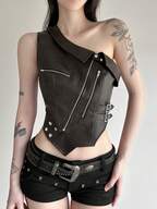 AiiRZ Off Shoulder Asymmetric Draped T-Shirt Ruched Waist Design Casual Loose Fit Modern Minimalist Top Fashion Basic Essential Cropped Length