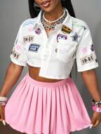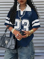 SHEIN Teen Girls Number & Stripe Print Short Sleeve Casual Street Style Volleyball Tee